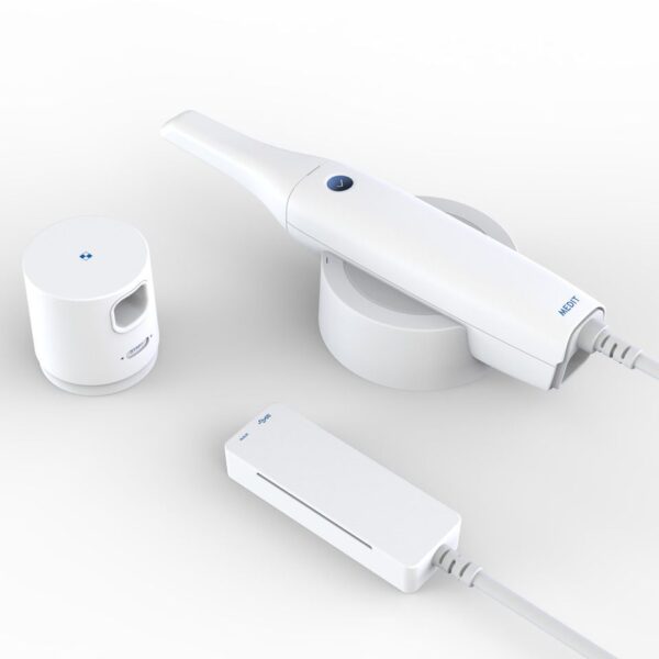 intraoraalscanner i500 van Medit Open CAD/CAM-syteem en volledige integratie met Exocad. Wordt geleverd inclusief kalibratietool, vier autoclaveerbare scantips, tafelhouder, wandhouder, stroomadapter, stroomkabel en USB 3.0-kabel. Hoge ROI – De i500 Intraoraalscanner is ontworpen met een hoog rendement op investering in gedachten. Het design en de software zorgen voor een ongeëvenaarde prestatie, in combinatie met een zeer concurrerende prijs. Grote flexibiliteit – De i500 maakt gebruik van een open CAD/CAM-systeem, waardoor STL-bestanden uit MeditLink geëxporteerd kunnen worden naar een CAD/CAM-productiecentrum naar keuze. Bestanden zijn eenvoudig te traceren zodat de voortgang gedurende de hele workflow gevolgd kan worden. Indrukwekkende snelheid – Met behulp van twee high-speedcamera’s scant de i500 snel en efficiënt. Dankzij het intelligente scandetectie-algoritme pakt de i500 gemakkelijk op waar het is gebleven voor een soepele scanervaring. Poedervrij – In de meeste gevallen is gebruik van scanpoeder niet nodig, waardoor het scanproces naadloos verloopt en de ervaring prettiger en comfortabeler is voor de patiënt. Kleine scantip – De kleine scantip is zowel voor de gebruiker als de patiënt prettig doordat deze eenvoudig gemanoeuvreerd kan worden in de mond wat het comfort van de patiënt verbetert. Videotype – Met de i500 hoeft u zich geen zorgen te maken over schokkerige resultaten aangezien het snelle scans maakt op basis van videobeelden. Het uiteindelijke totaalbeeld wordt gemaakt door de dubbele camera’s, waardoor deze vloeiend, nauwkeurig en foutloos is. Kleur – De i500 scanner produceert nauwkeurige kleurenscans die onderscheid maken tussen soft tissue, plaque en elementen.